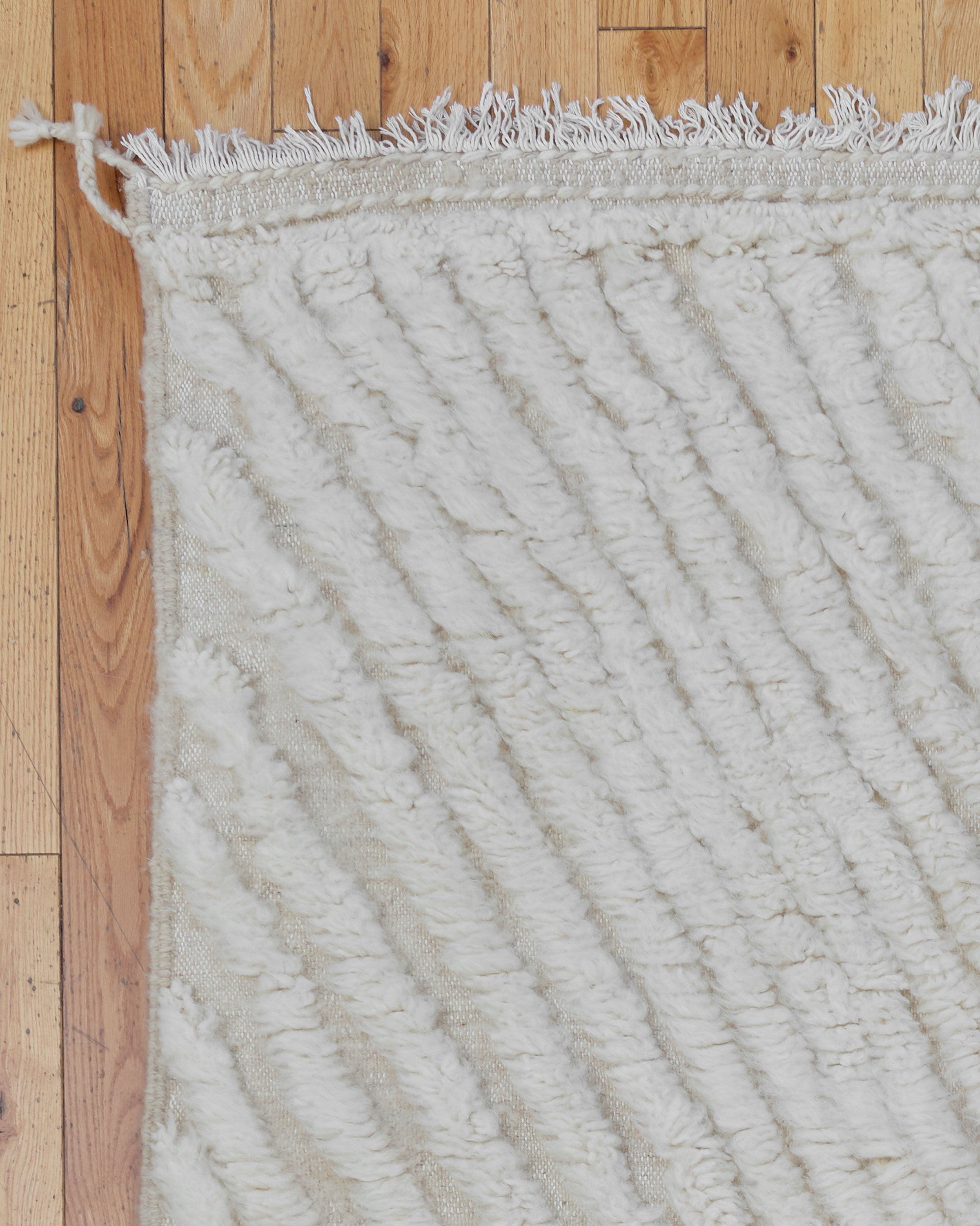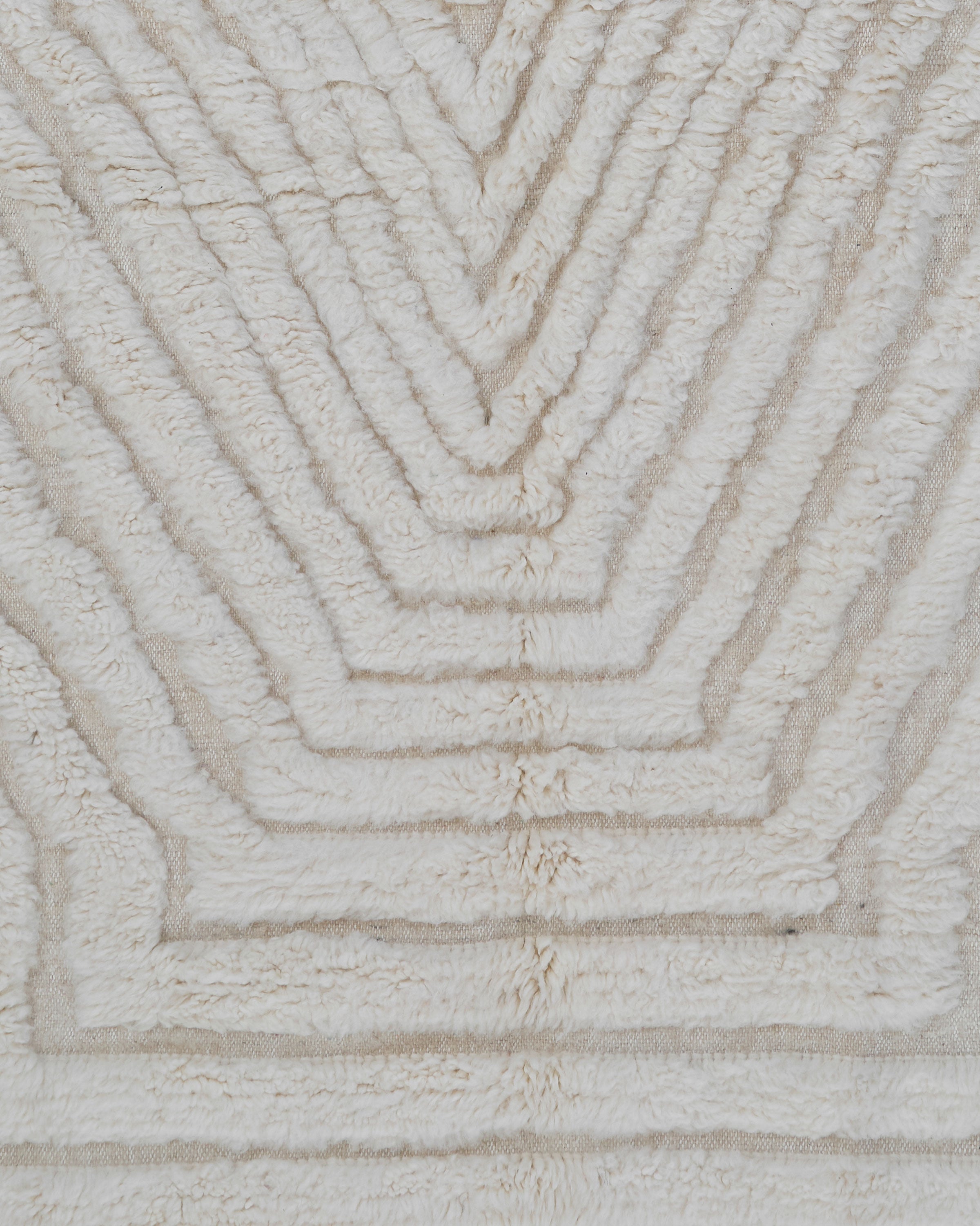 Beni Ouarain rugs are traditional Moroccan handwoven carpets made by the Berber tribes in the Atlas Mountains. Known for their thick, woolen texture and minimalist geometric designs, typically in black on a cream background, these rugs are both cozy and stylish. They are highly prized for their craftsmanship, durability, and ability to complement a variety of interior styles.
