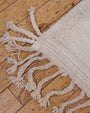 Beni Ouarain rugs are traditional Moroccan handwoven carpets made by the Berber tribes in the Atlas Mountains. Known for their thick, woolen texture and minimalist geometric designs, typically in black on a cream background, these rugs are both cozy and stylish. They are highly prized for their craftsmanship, durability, and ability to complement a variety of interior styles.
